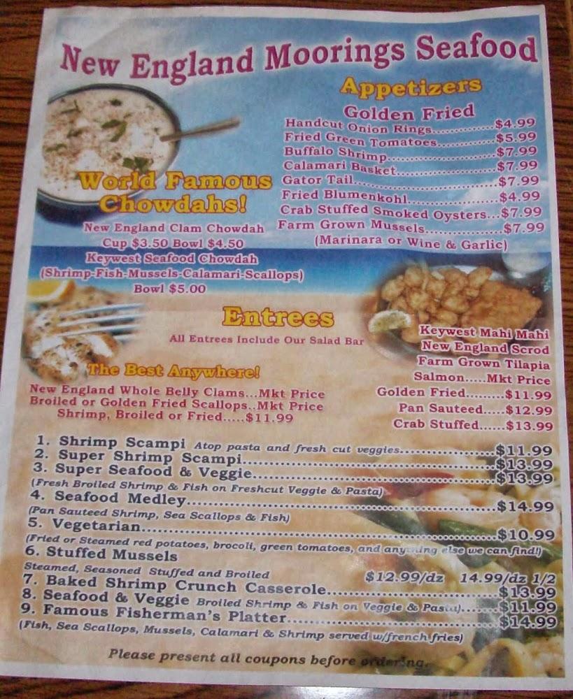 The menu at The New England Moorings focuses heavily on seafood while offering some traditional dishes. Expect seasonal catches and local specialties that excite. Fried shrimp and crab cakes are popular staples.